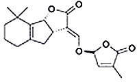 | Synonym | [ent-5-deoxy-stigol, (3aS,8bR,E)-8,8-dimethyl-3-(((S)-4-methyl-2,5-dihydrofuran-2-yloxy)methylene)-3,3a,4,5,6,7,8,8b-octahydro-2H-indeno[1,2-b]furan-2-one] |