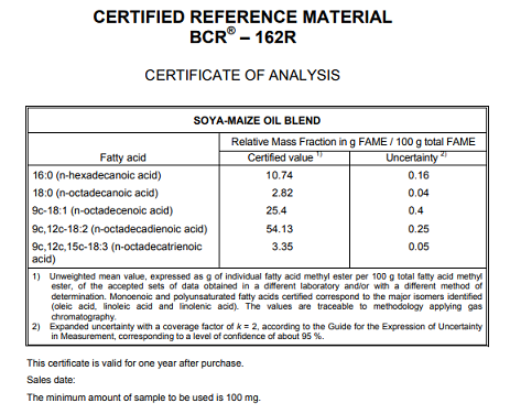 | Chemical Name | BCR-162R SOYA-MAIZE OIL BLEND (fatty acid profile) |
